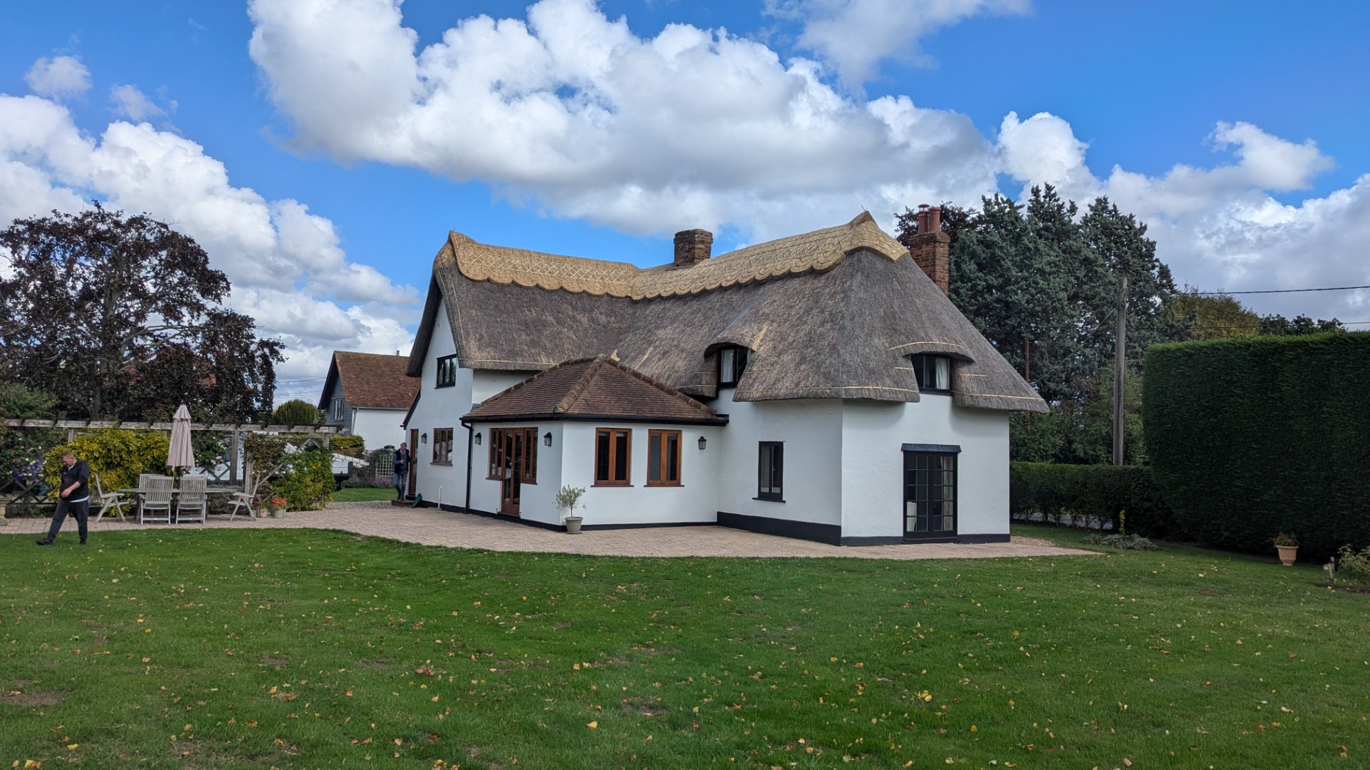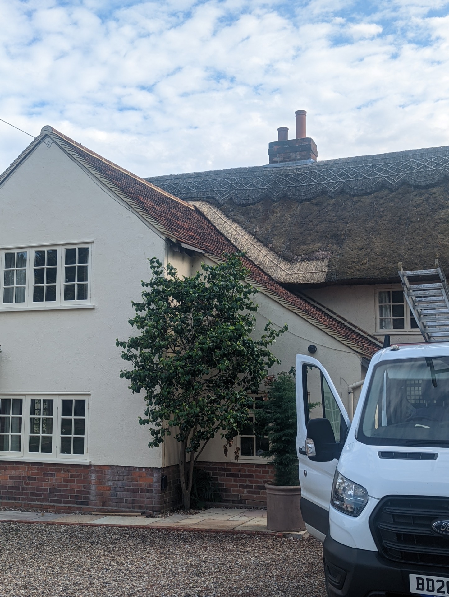 All wire will be removed and Thatch stripped down to a sound base, all excess materials will be disposed of and a new coat will be applied at an approximate thickness of 10-12". A new ridge will be applied & all eves/barges will be rodded & cut, Your roof will then be totally re-wired to prevent vermin damage and any chimney fillets replaced.